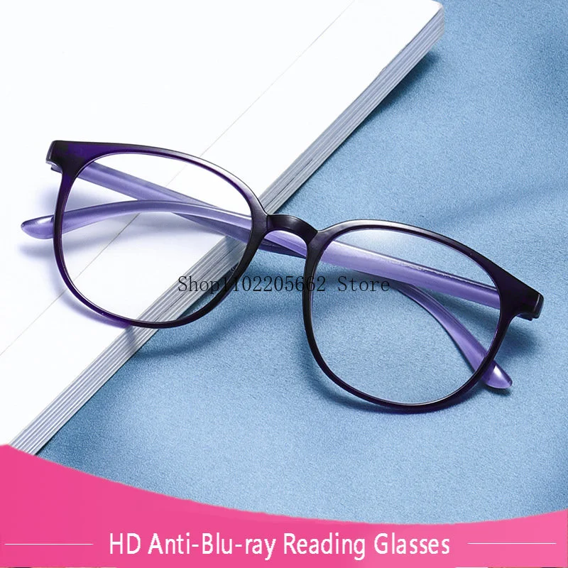 Presbyopic Glasses Women Anti-blue Light Clear Reading Glasses Business Men Round Frame Diopter Hyperopia Eyewear +100 To +400